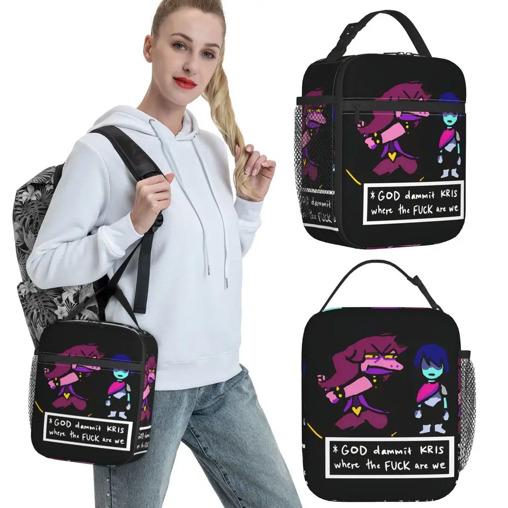 Deltarune Trio Lunch Bag Vintage Lunch Box For Women Office Portable Insulated Cooler Bag Waterproof Graphic Thermal Lunch Bags