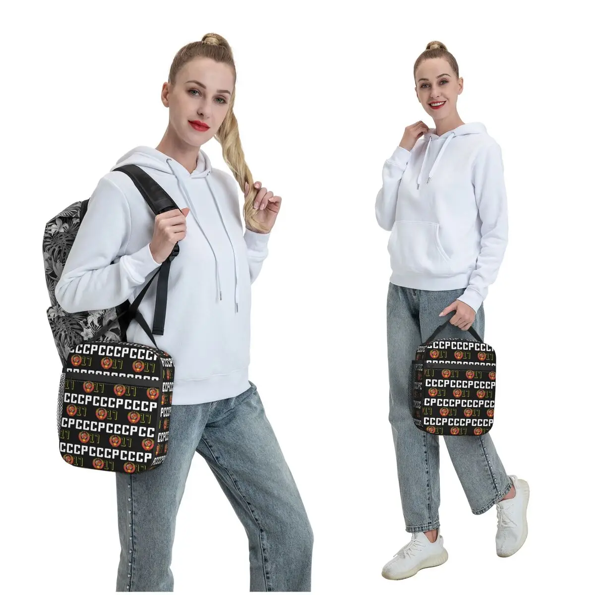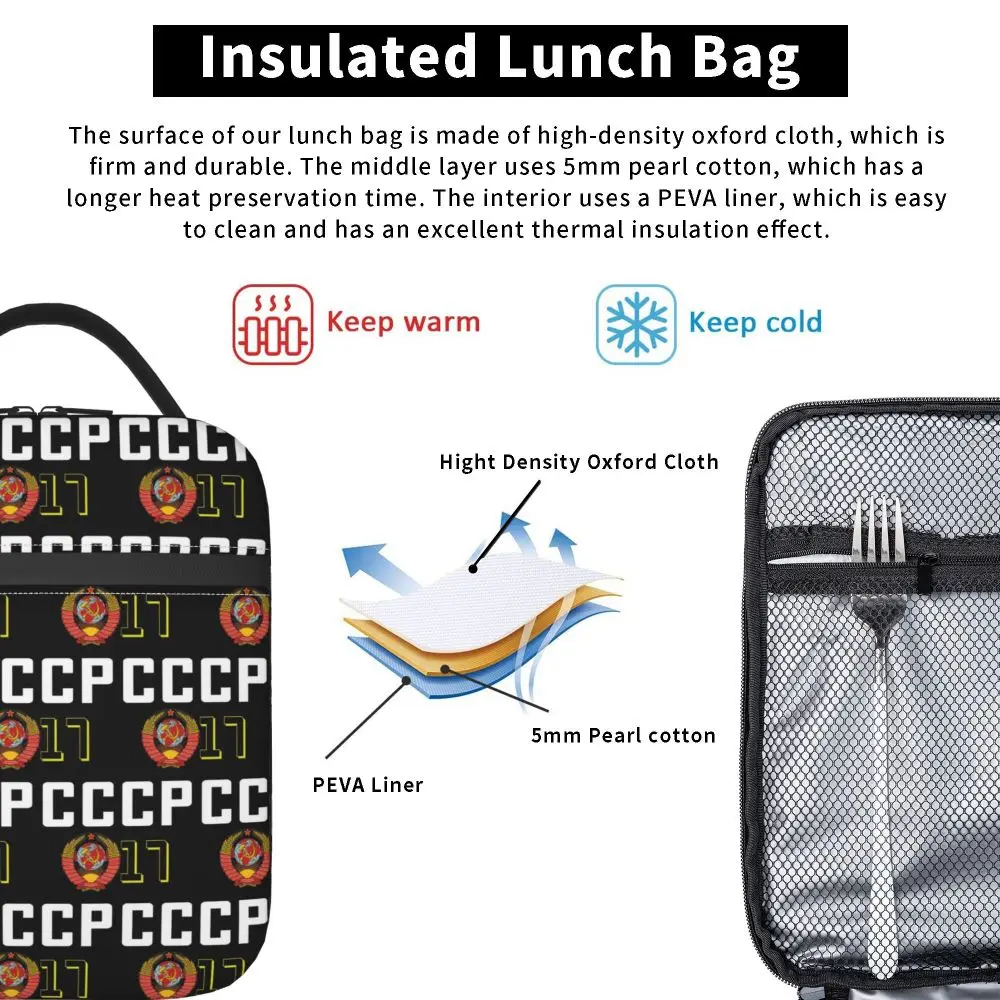 USSR Hammer And Sickle CCCP Russian Soviet Flag Insulated Lunch Bag Women Children Portable Food Boxes Thermal Lunch Box Tote